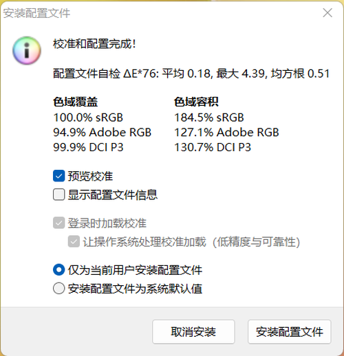 平均△E为1.1,△E≥3的颜色完全没有。不愧是华硕好屏加持的OLED屏幕,色准精准度也很好。