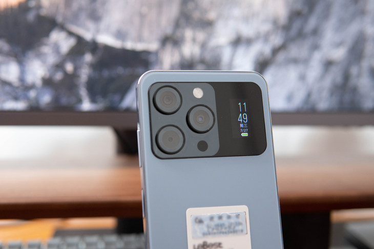 刚看到它的背面,泡哥就陷入了深深的自我怀疑……后置三摄的排布和苹果iPhone 13 Pro如出一辙,右侧却还有一块小米11 Ultra般的副屏,甚至还有点好看。