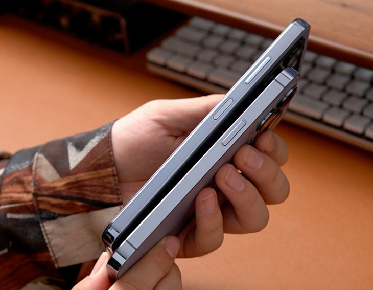 不过在它身上苹果的基因还是很强大的,就连后壳配色都与iPhone 13 Pro远峰蓝高度一致,并同样有着磨砂质感,也不怎么沾指纹。