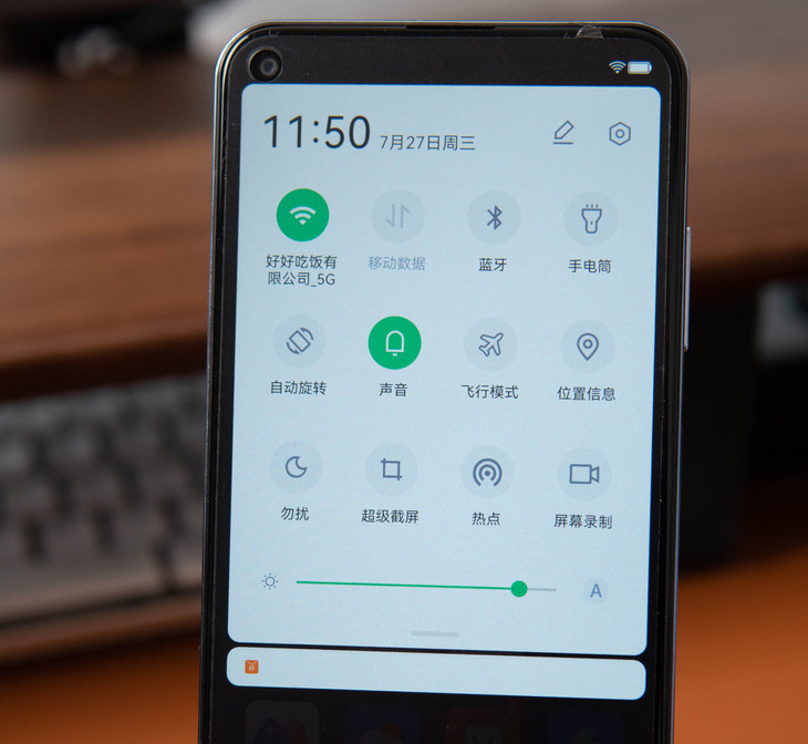 这还没完,下拉通知栏,白绿色组合的快捷开关,又有浓浓的OPPO Color OS味儿。