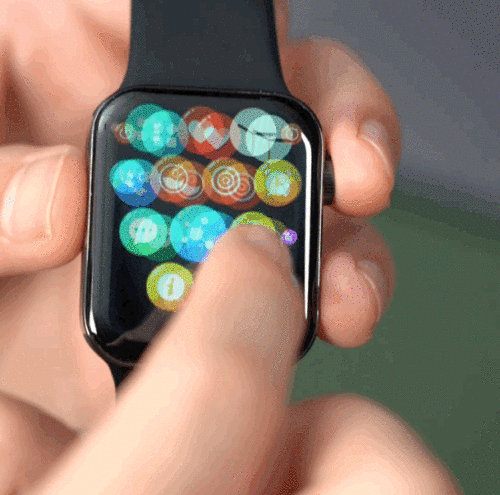 先说值得肯定的,手表屏幕支持触控操作,且跟手性不错……是的你没看花眼,它还有着和苹果一毛一样的圆形图标页面。