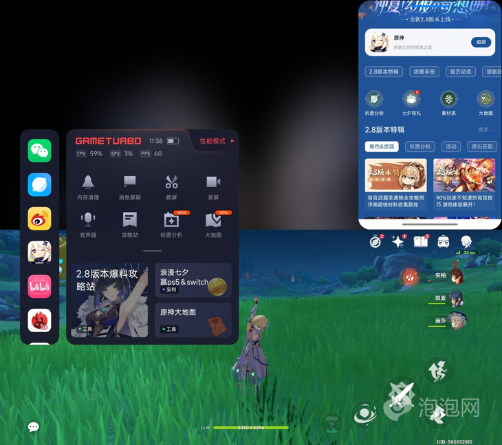 游戏方面,我们测试了《王者荣耀》、《和平精英》以及《原神》,来看一下小米MIX Fold2的游戏体验如何。在游戏过程中,我们在PerfDog提供的技术支持下进行了帧率的监测。