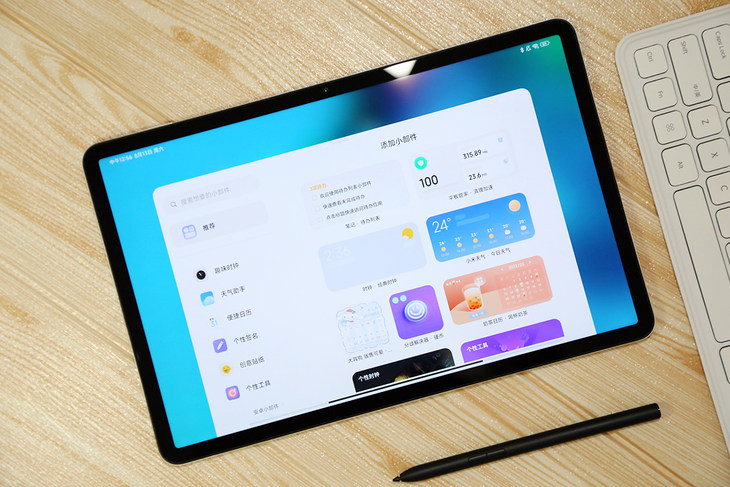 在主屏上,可以摆放小部件,在屏幕上可以直接查询相关信息或者对平板进行设置。MIUI Pad 13内置了丰富的小部件供用户选择,添加时左侧显示为类别,右侧为部件预览画面,更加的直观。