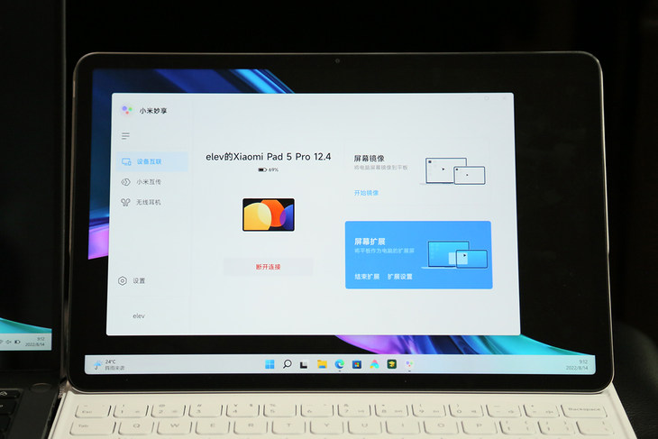 小米平板5 Pro 12.4还可以作为笔记本电脑的扩展屏幕使用,支持xiaomi book Pro OLED 2022系列,将笔记本内置的MIUI+升级到小米妙想PC版之后,就可以与小米平板5 Pro 12.4进行连接。