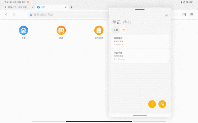 MIUI Pad 13还优化了交互方式,从屏幕的右下角向内侧滑动,就可以将全屏显示的应用变为窗口显示,还可以调整窗口大小。
