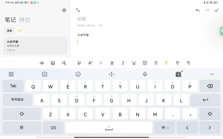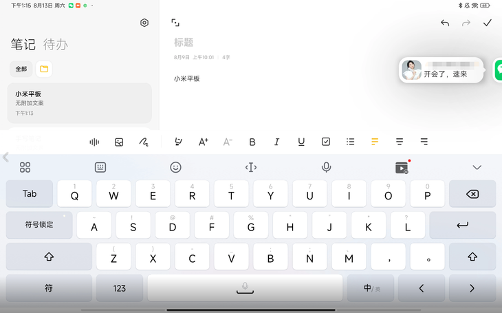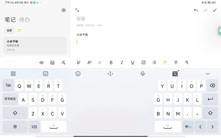 在文字输入方面,考虑到用户不同的使用方式,小米平板5 Pro 12.4也提供了多种的输入方式,包括分离键盘、拟真键盘等,让用户在平板上输入更加的高效。