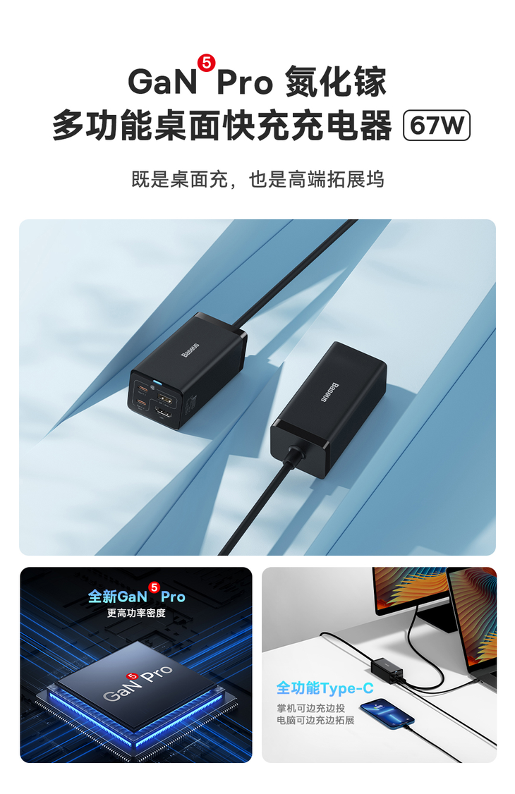 倍思 GaN5 Pro 氮化镓多功能桌面快充充电器