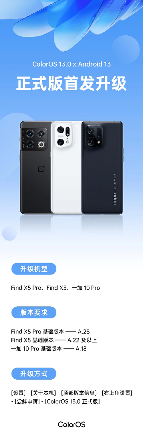 ColorOS 13正式版推送:OPPO Find X5/Pro、一加10 Pro开放升级
