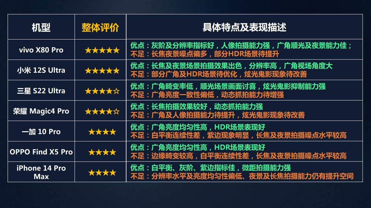 中国移动2022年智能硬件评测报告,手机摄像头拍照评测结果如下: