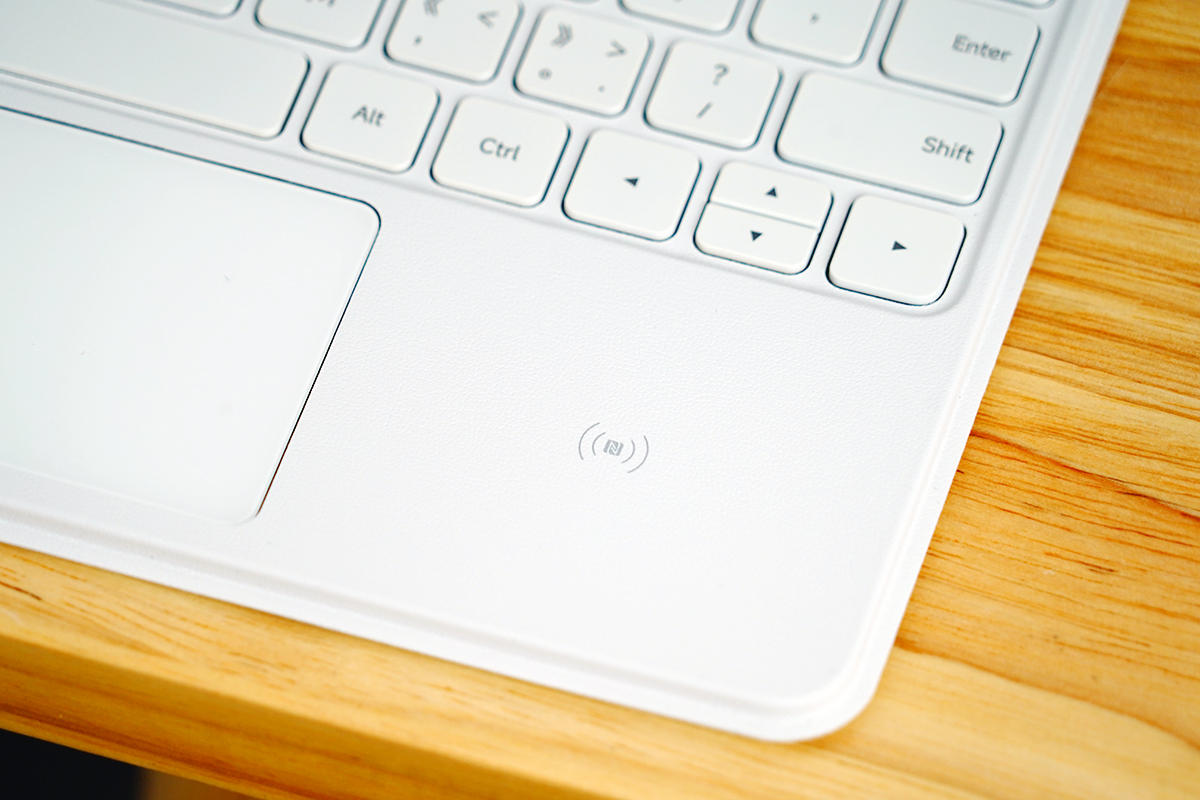 在小米智能触控键盘上还设置有NFC触控区域,可以将手机中的内容一碰秒传到平板当中,极大的提升了传输的效率。