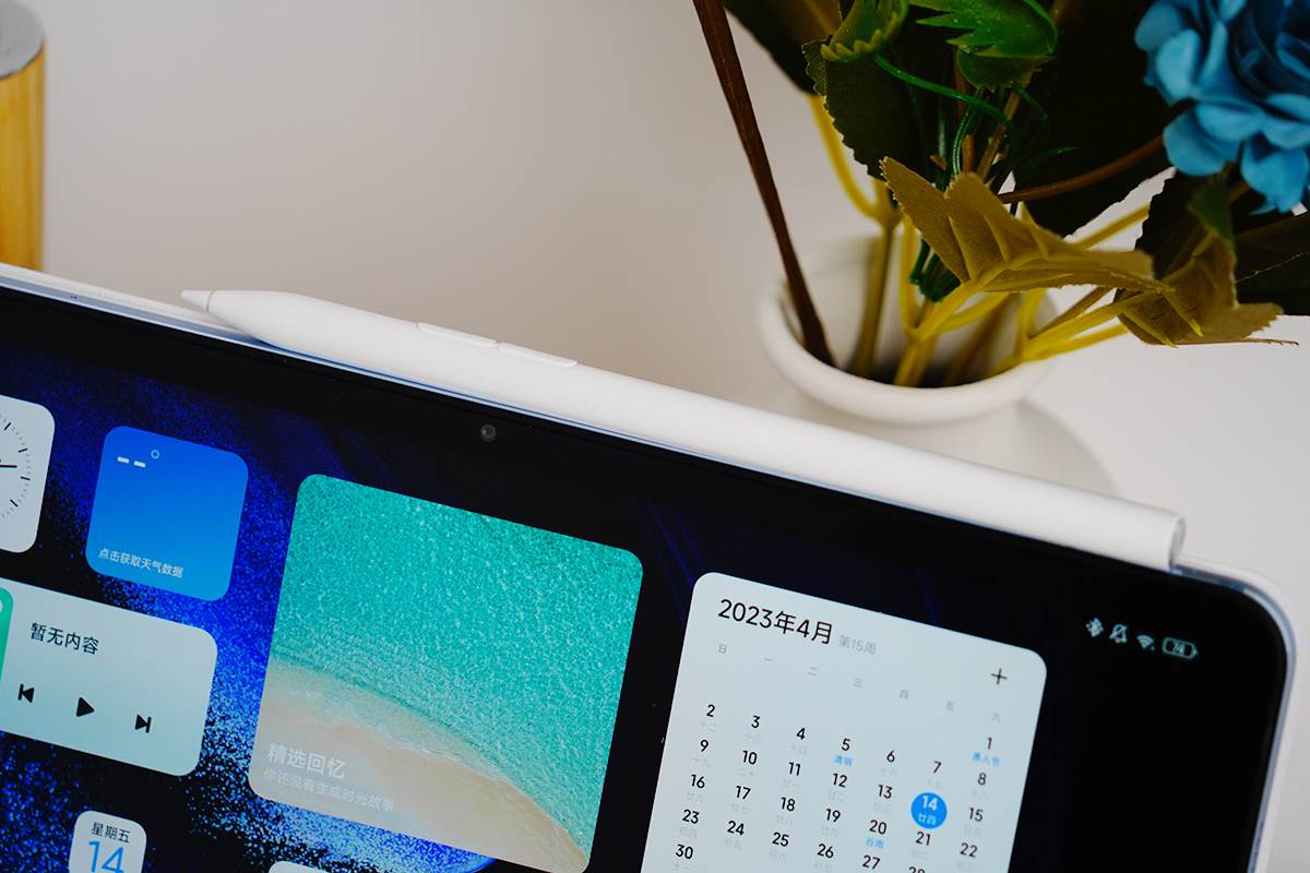 触控笔可以通过磁吸的方式吸附在小米平板6 Pro的边框上,吸附的同时也在充电,可以做到充电1分钟,书写7小时,满电状态下可以连续书写150小时,在续航方面也做到了升级。