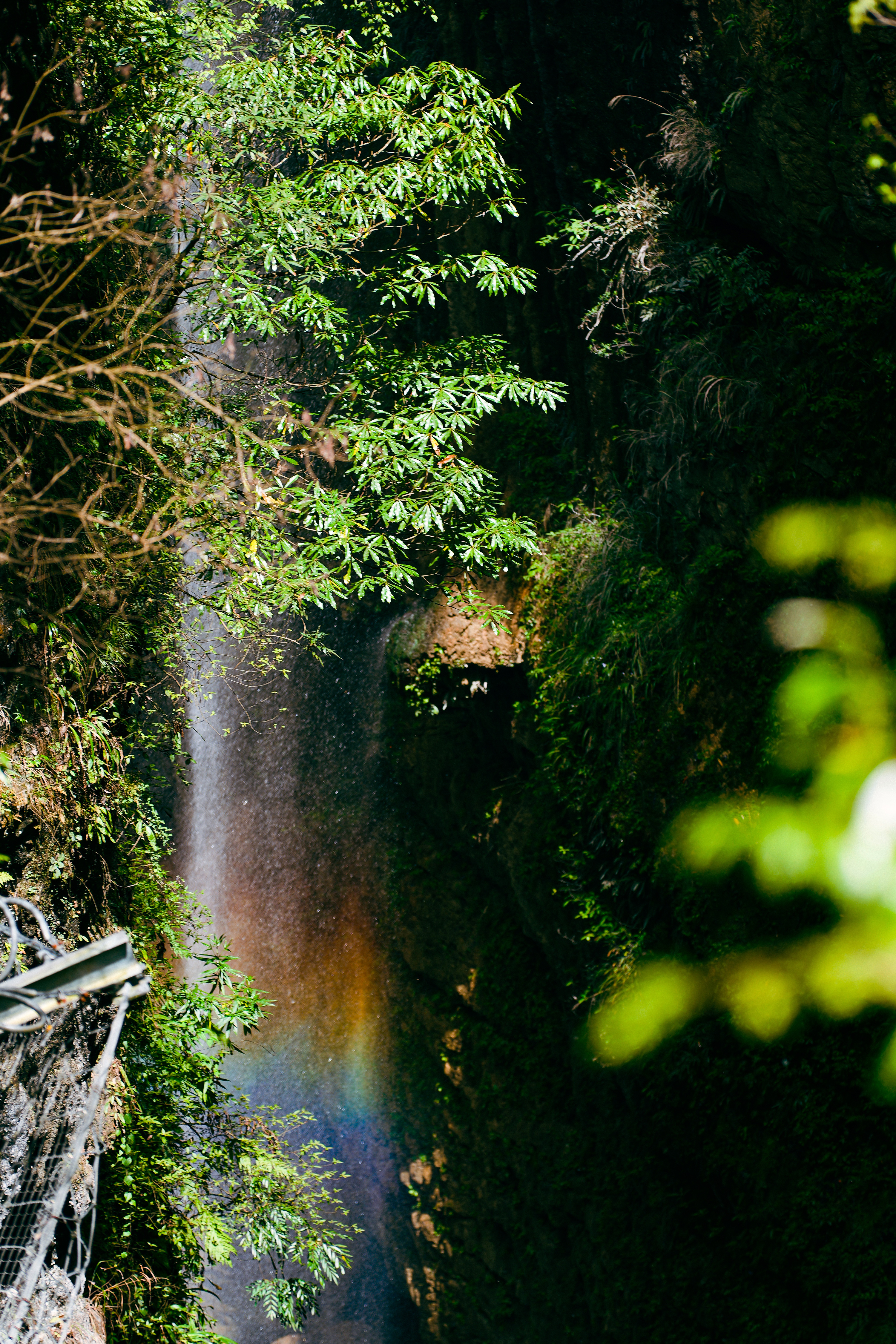 当然,恩施大峡谷并非只有高耸入云的山峰,峡谷底的云龙地缝也非常值得一去。这里其实下陷的一条很窄很深的河谷,就像地上的一个大裂口子,全长3.6千米,平均深75米,平均宽15米 ,两岸峭壁,飞瀑狂泻、缝底流水潺潺,上通天水暗河,下联莽莽清江。地缝上共有7条半瀑布,还有一条瀑布叫“半流瀑”,丰水期有,枯水期无,所以叫做半条瀑布。云龙地缝曾是云龙河的伏流段,以暗河形式沉睡地下二、三千万年,后因水流在地下强烈掏蚀,在地表不断剥蚀、致使暗河顶部坍塌,地缝才得于面世,成为恩施大峡谷一大奇观。