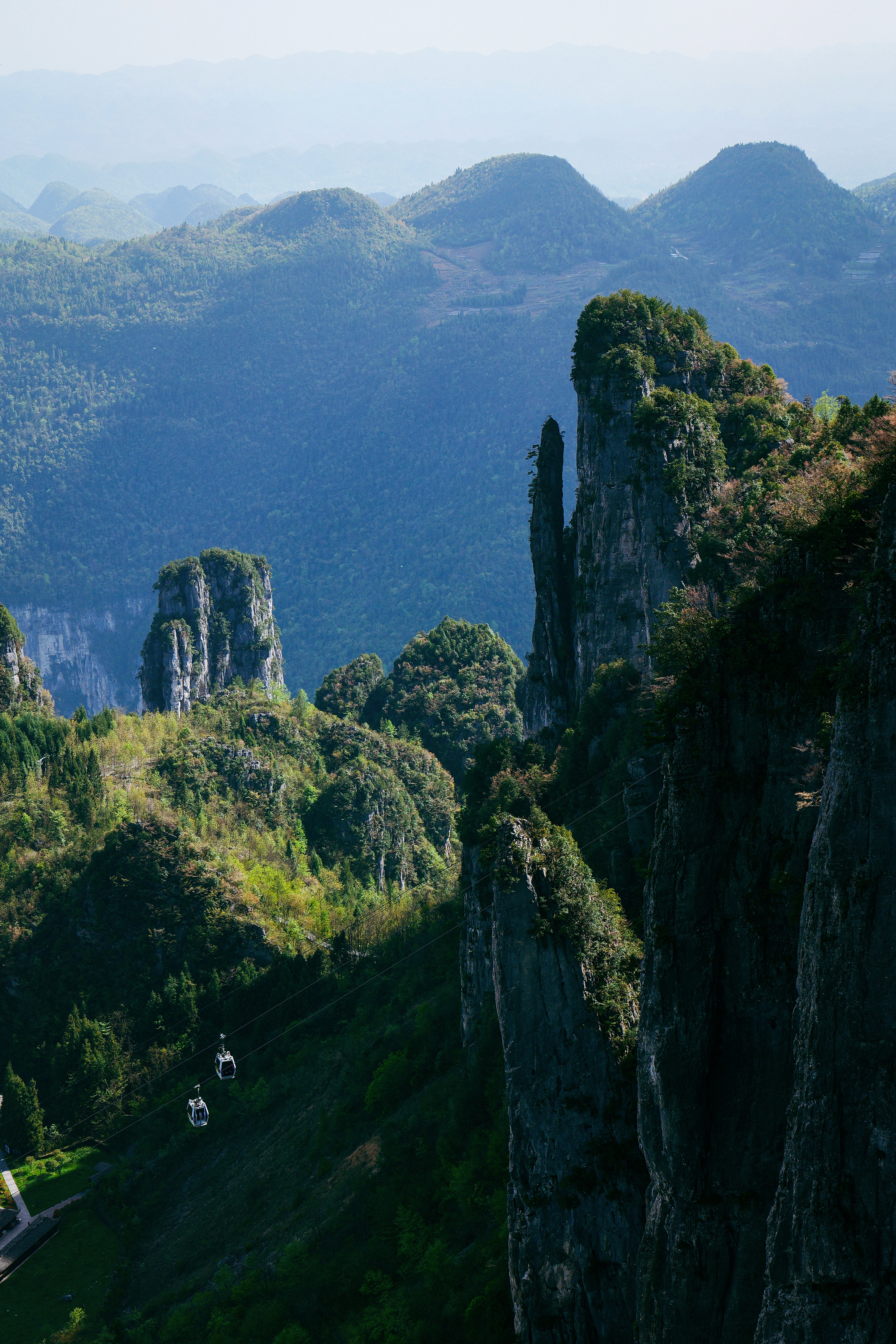 恩施大峡谷景区面积非常大,尤其是高高耸起的山峰就像巨大的天然屏障,好在还有缆车可以把人送到半山腰。这里的地形地势起伏很大,缆车一开始上升,峡谷里和对面的风景一下子开阔起来。这次的恩施之行我全程使用的都是松下LUMIX S5M2全画幅微单相机,这是一款主打拍照与视频都全能的“水桶机”,而此行首先让我感受最深的是LUMIX S5M2的轻便,虽然上山有缆车,但去往下山的位置需要翻过四个山头,以及还有上下8000个台阶分布在15公里长的山道上。长途跋涉是体能的考验,好在LUMIX S5M2虽然是一款全画幅相机,并且这次还加入了主动散热系统,但是加上我挂机搭配的LUMIX S 20-60mm F3.5-5.6镜头,整体重量也就1000g左右,为我减轻不少负担,要不然这一趟路程真的吃不消。