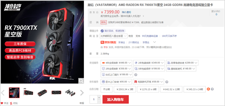 AMD旗舰显卡RX7900XTX大量降至7399元
