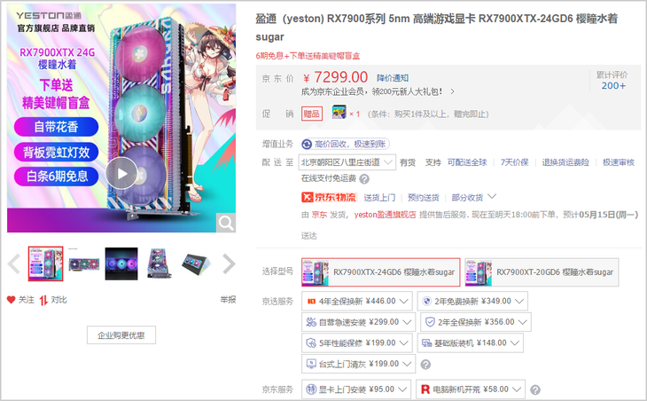 盈通(yeston)RX7900XTX-24GD6樱瞳水着sugar显卡价格更低,目前7299元即可拥有。