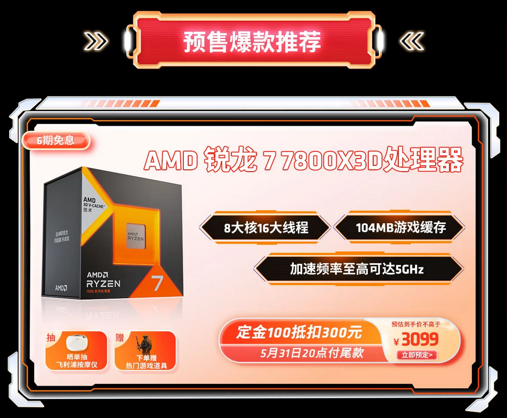 一年一度的京东商城618大型促销活动将在今晚8点正式开启,今年京东的平台补贴力度将远超以往,并且推出了各种保障消费者利益的服务,让朋友们可以享受到最实惠价格的同时拥有好的购物体验。AMD(超威)每年都会同步在京东商城自营旗舰店为广大DIY用户带来各种各样的活动,今年也不例外,“好货不必等 怦然芯动”的爆款提前购促销现已正式推出,大家赶快前来AMD京东自营旗舰店的活动页面了解一下吧!