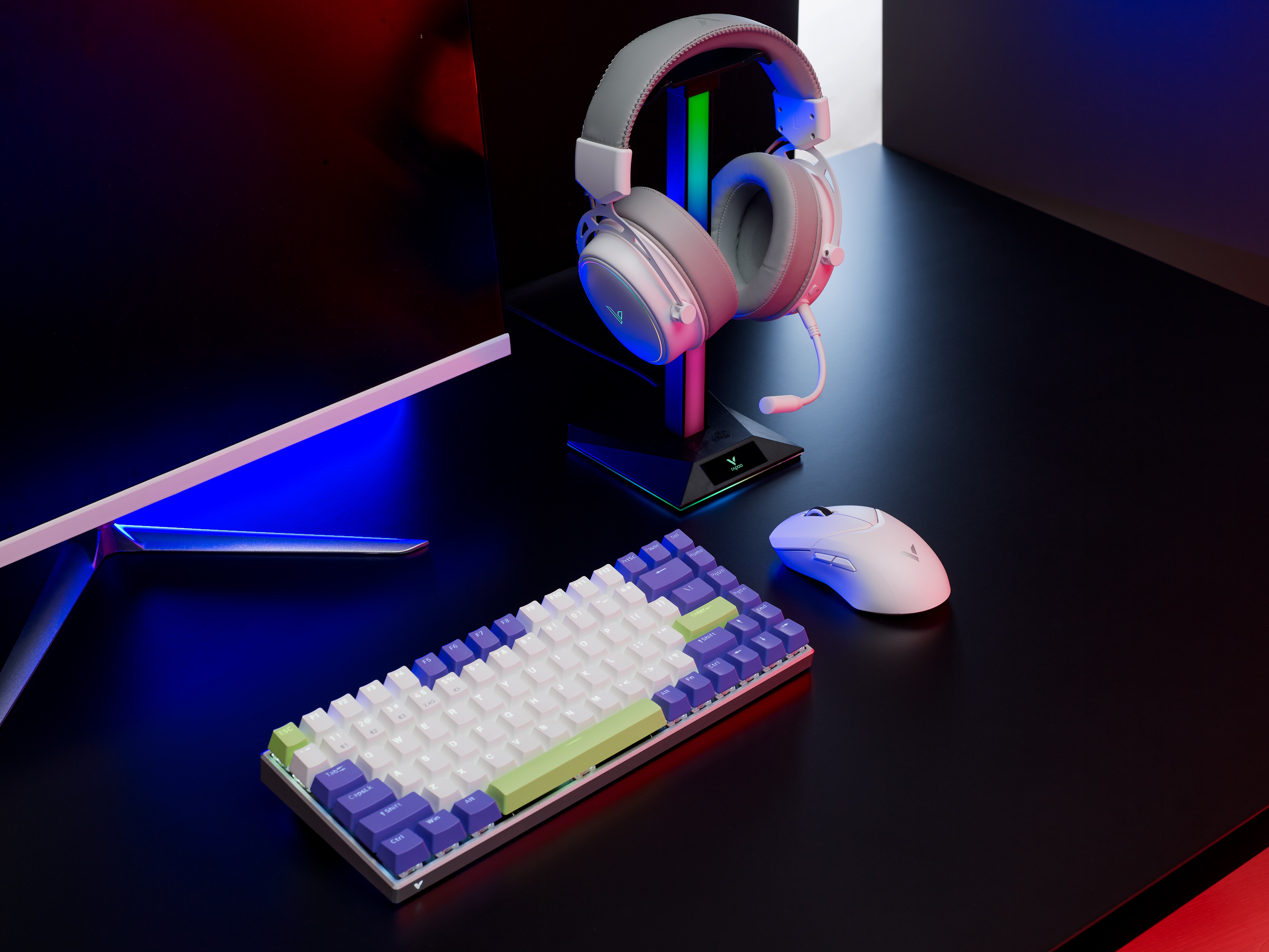 以技术研发为核心,以市场需求为指引,V+无线游戏技术提升优化续航、低延迟、抗干扰、使用距离,准确分析,果断判断和专业反应,全面升级无线电竞标杆配置。自主研发定制雷柏轴体、雷柏微动、游戏芯片等核心产品部件。热插拔轴、Qi无线充电、OLED显示屏、防水防尘、板载内存、云端存储等具有出色电竞表现的个性化功能解决玩家需求痛点。