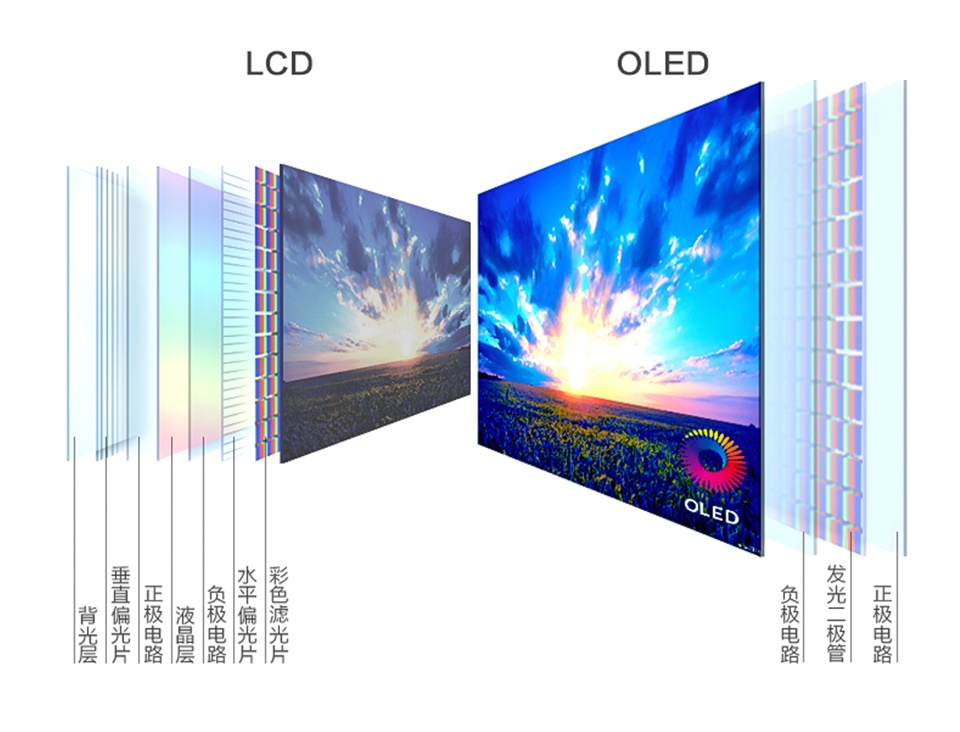 传统液晶显示器,因为液晶面板的发光原理所限,其在屏幕中所显示的一切色彩、包括黑色,都是白色背光源在经由层层玻璃滤光片过滤调和、改变了白光波长之后方才得到的。这也导致了传统液晶显示器在显示黑色时,不可避免的会受了原有白色背光透光的影响,而呈现出一种淡淡的光晕,致使屏幕中的黑色看起来往往并不那么「黑」,隐隐的有一种发光、发亮的灰色效果…这就多少有点儿像现在盛行的美颜滤镜,美是美了、朦胧的意境也有了,就是有些不太真实…