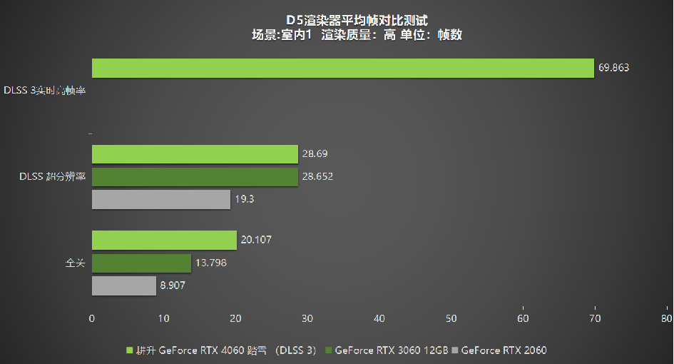 新版本的D5渲染器也对NVIDIA DLSS 3技术进行了新适配,此次测试种我们使用了耕升 GeForce RTX 4060 踏雪 、GeForce RTX 3060 和GeForce RTX 2060分别在精美的室内场景内进行测试,接下来让我们来看看实际表现吧。
