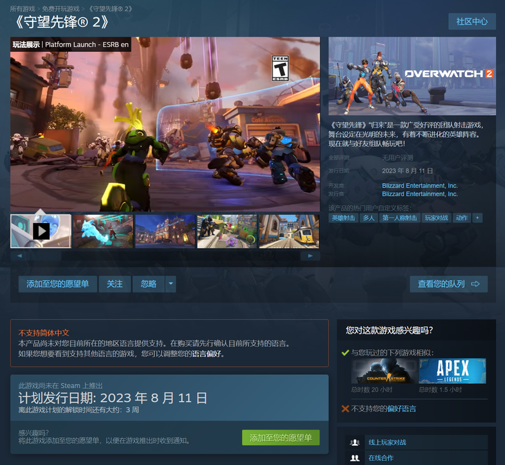 暴雪游戏新动态,《守望先锋2》预计8月11日登陆Steam平台