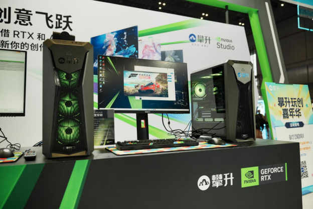 现场,攀升科技发布 2023 夏季新品推荐,携手英伟达全新显卡为玩家带来极 致电竞体验和全面升级的RTX游戏黑科技。攀升科技还在现场举办电竞水友赛,开辟《极限竞速》赛车,VR 体验等游戏互动专区,让玩家们在攀升科技展区尽情享受“破次元”的纯粹快乐。宅舞表演、COSER 走秀等精彩活动也将攀升科技展台吸引力直接拉满!