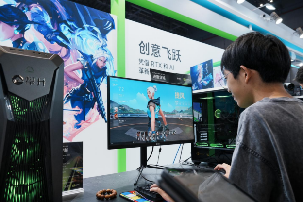 通过搭载RTX 40系显卡的新一代攀升科技主机,玩家在现场能体验的不止于游戏。通过视频超分辨率技术,RTX显卡能帮助BiliBili的在线视频大幅度增强画质;使用英伟达Broadcast App,玩家可以获得 AI 带来的全新直播和视频通话 AI 新体验;更有 CancasAI 绘画让你一展才华。将简单的笔触快速转换为逼真的风景图,激发背景创作、概念探索和创意灵感。