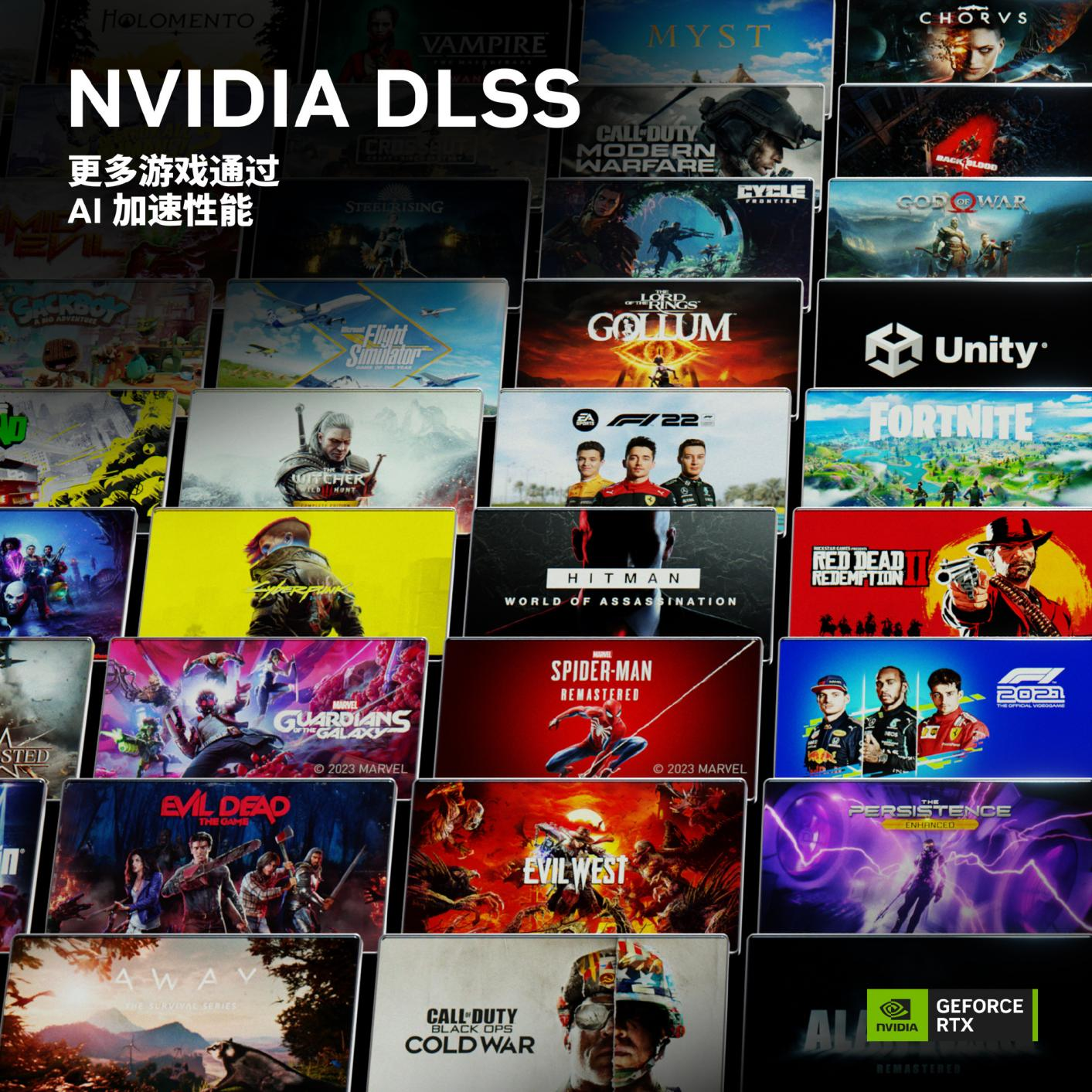 攀升最 新整机全面升级GeForce RTX 40系列GPU,全面支持DLSS 3,DLSS 3在DLSS 2超分辨率技术的基础上增加了AI驱动的帧生成技术,提升最 高可达4倍。37款 游戏和应用现已支持DLSS 3技术。如最 新的《赛博朋克2077》超速模式技术预览版支持完整的路径追踪。可以说,没有AI的进步,就没有开启全景光线追踪的可玩帧率。 NVIDIA DLSS技术现已应用于300多款 游戏,并且数量还在不断增加。