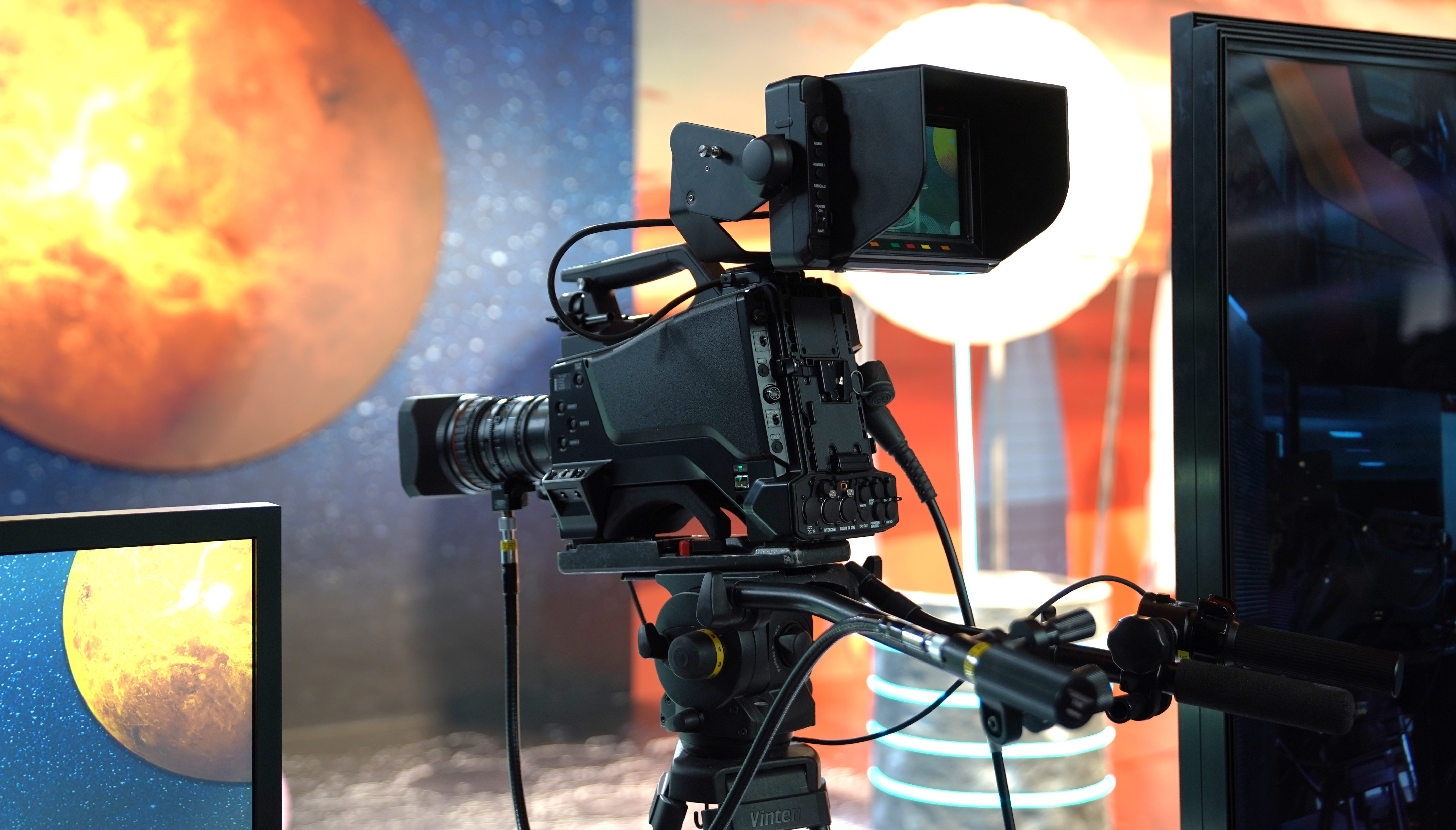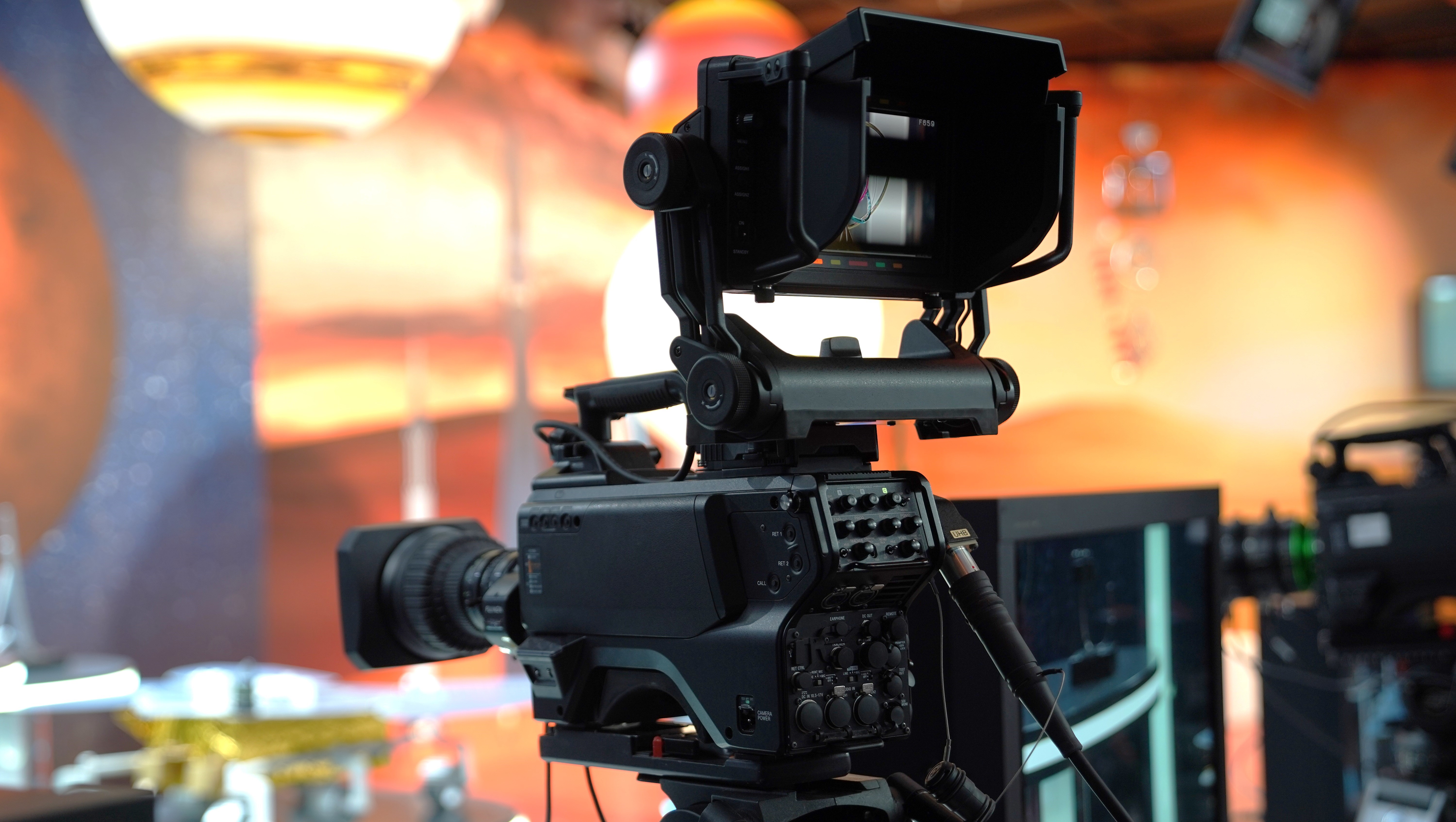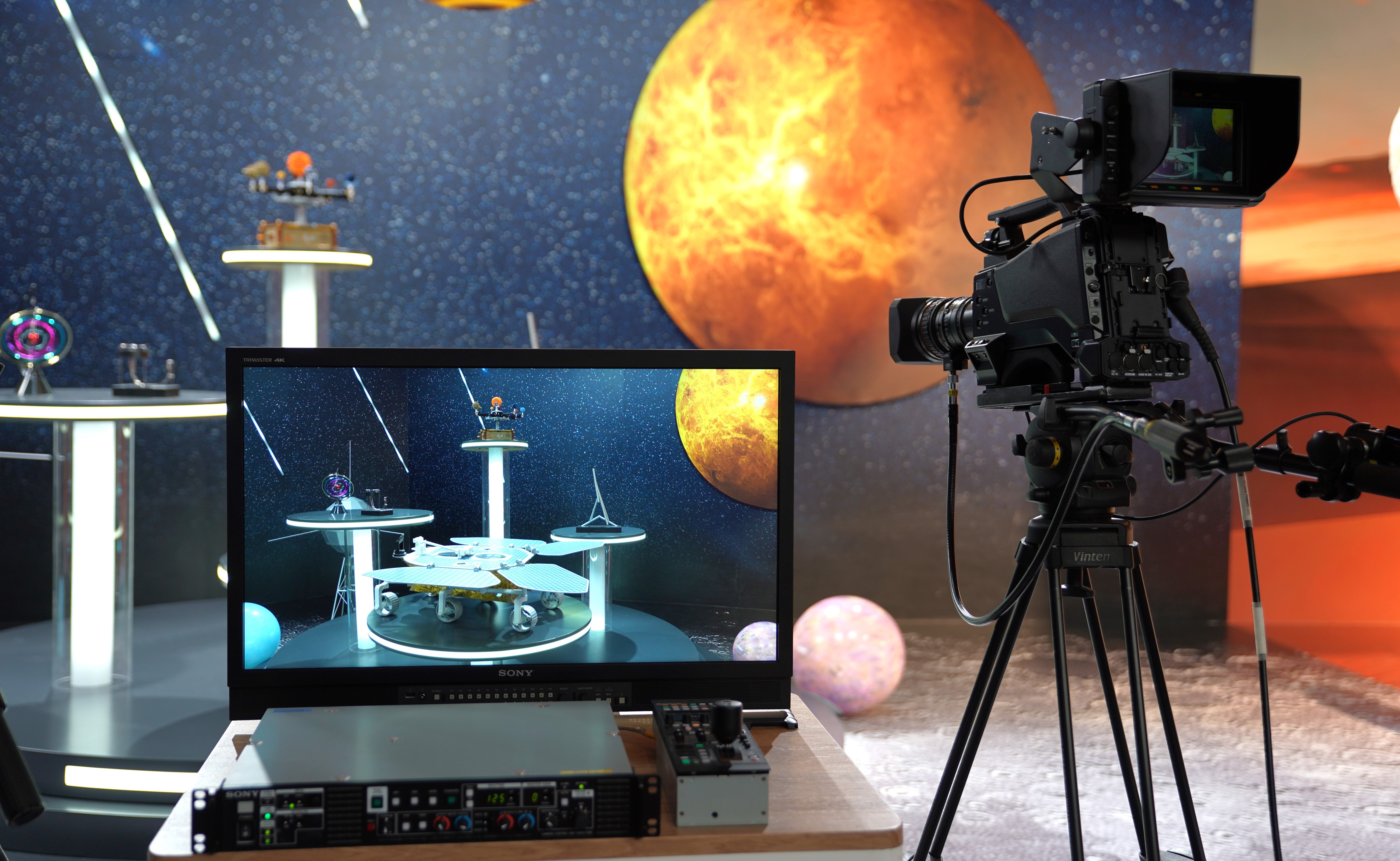 在索尼虚拟制作系统的基础上,利用独特专利技术完成的系统解决方案——索尼虚拟制作多讯道切换解决方案,能够高质量、高安全性地完成多机位制播。通过支持全域快门功能的索尼系统摄像机,索尼制作切换台和黑彩晶LED屏幕,在直播制作中精准实现多机位切换,进行带有机内VFX的高质量拍摄。该解决方案可应用于更广泛的节目,如访谈、综艺、脱口秀、科教节目等。