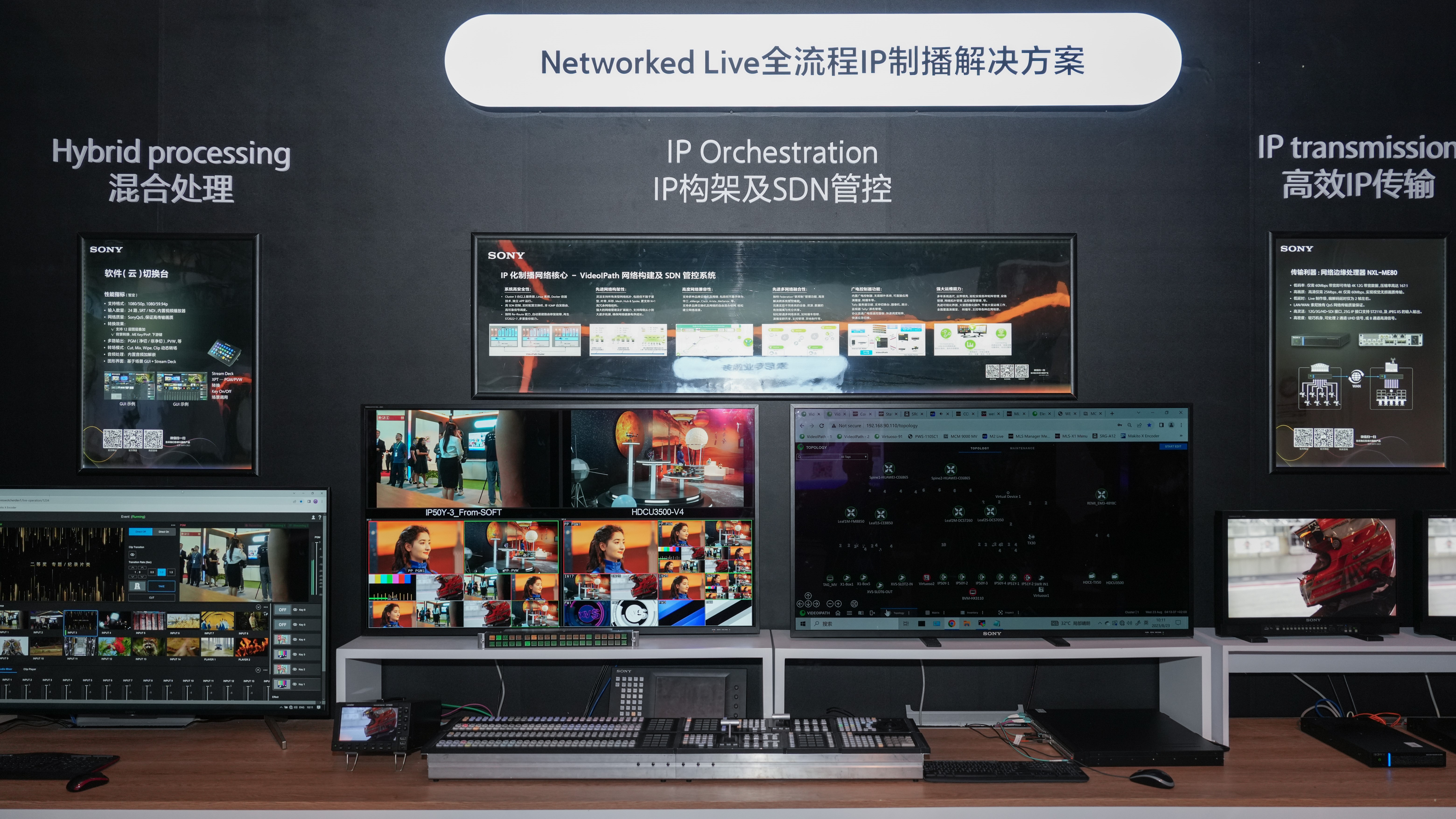 索尼公司的“Networked Live”网络化制播解决方案是SDI走向IP的全面解决方案,新推出的硬件到软件及云端切换台等混合制作技术、高质量低延迟高压缩比传输技术等,通过高性能广电SDN网络管理,确保稳定可靠的高质量传输,本地和云端相结合,方便用户几乎可以在任何时间、任何地方、以任何方式进行重要节目高质量转播,实现安全可靠的高质量直播节目制作。