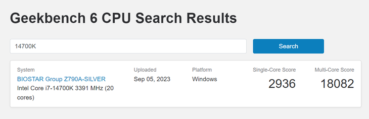 酷睿i7-14700K目前只有一次成绩收录在册,单核心成绩为2936多分,多核心成绩为18082多分。其多核心成绩已非常接近酷睿i9-14900K。
