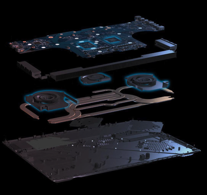 好的游戏体验也离不开散热,魔霸新锐2023搭载冰川散热架构3.0,在CPU表面采用第二代暴力熊液金,并且配备有三个绝尘风扇以及七根热管,通过环绕式出风的方式加强散热能力,带来高效的散热表现,从而让设备具备长时间高性能输出的能力。