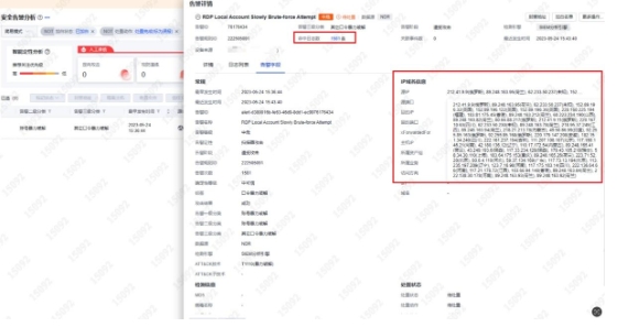 多对一降噪:当黑客采用多个源IP,暴破同一个资产,无论持续了多长时间、成功与否,深信服XDR只需要给用户呈现一条事件或告警,在首次生成告警后,在该告警详情里持续更新。