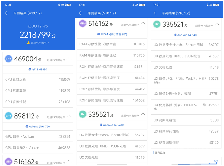 得益于第三代骁龙8的性能提升,iQOO 12系列也带来了超过220万的安兔兔跑分成绩,性能的提升不仅带来了更流畅的操控感,同时也为优秀的游戏体验奠定了基础。