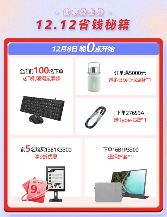 年终钜惠,直击底价!双11的狂欢热潮才散去不久,双12特惠盛典又被提上了日程。12月8日0:00-12月12日23:59,飞利浦商用显示器京东自营旗舰店“12.12巅峰特惠”活动火热来袭!