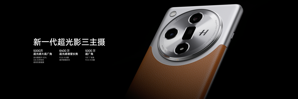 Find X7 超光影三主摄包括 1/1.4 英寸更大尺寸的 5000 万像素超光感大底广角、更高分辨率的6400万超光感潜望长焦,以及 119° 更大视场角的 5000 万超广角。全新的超光感大底广角带来 50% 的进光量提升,并首次支持全量的 DCG HDR 功能,为照片和视频拍摄提供更出色的动态与光影。