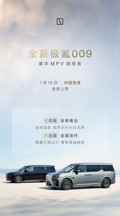 全新极氪009将于7月19日全球上市,将推出7座版车型