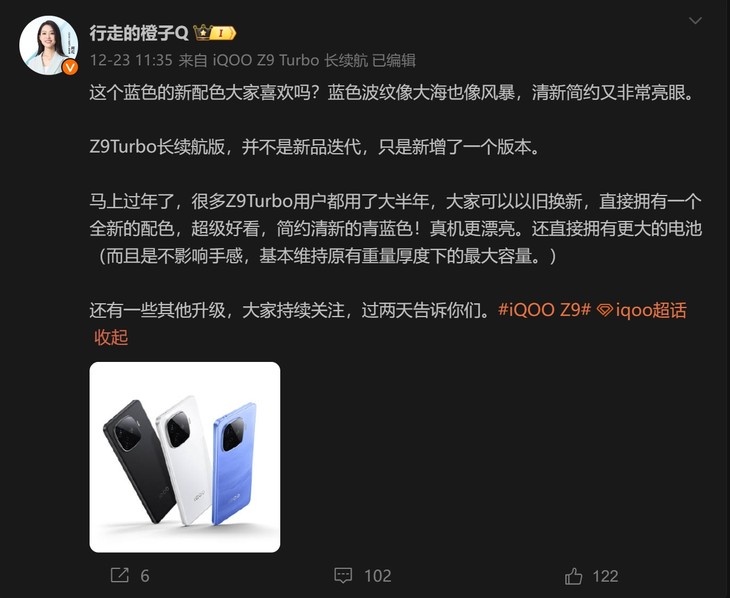 iQOO Z9 Turbo长续航版:超大电池与高帧体验兼得