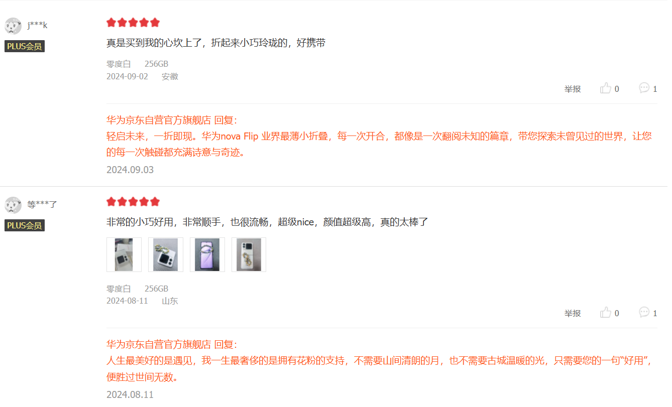 华为nova Flip出色的拍照能力也受到了用户的认可,在用户的反馈当中,拍照清晰、效果好也被很多用户提及。所以对于喜欢拍照的用户来说,华为nova Flip也是非常值得推荐的手机。