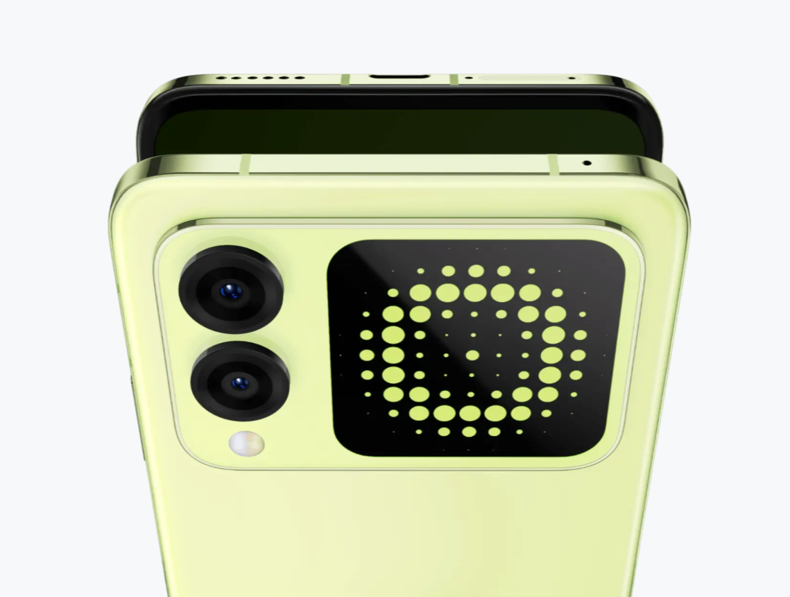 此外,我们还可在这块1:1方形外屏上进行外屏小游戏,而个性化的妙趣台显功能,不仅可以显示时间,还可以让手机折叠成支架态置于桌面后秒变迷你小音箱,播放不同歌曲时可自动识别不同形态的渲染参数,简直就是潮系青年的解压神器。