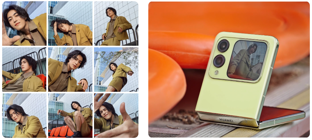 值得一提的是,华为nova Flip还带来了1:1的正方形构图,相较于传统的4:3或者16:9的照片比例,1:1的比例可以呈现出更浓厚的故事感,特别是用于拍摄人像,可以更加突出人像主角。还可以拍摄9张图片发朋友圈,简直就是假期晒图的神器。