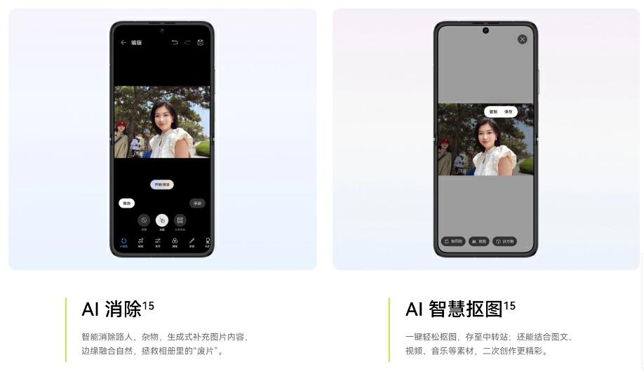 得益于强大的AI能力,华为nova Flip也实现了手机后期的更多玩法,比如人像消除功能,在春节假期,各大景点想必都会人满为患,这个时候想要拍一张纯净的照片是不可能的,但如果有了华为nova Flip,就可以利用AI将路人消除,再也不必担心拍摄时的背景杂乱问题。