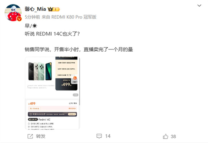 REDMI 14C:499元的性价比巨兽