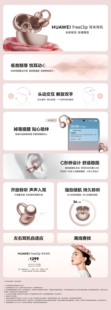 是耳机更是时尚单品,全新华为FreeClip耳夹耳机玫瑰金配色现已开启预售