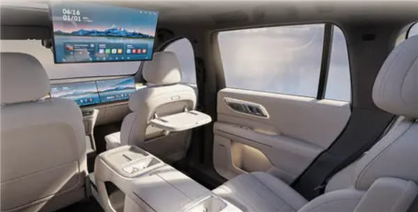 深蓝S09的座椅功能十分丰富,提供全车座椅加热和通风功能。尤其是第二排,采用双独立座椅设计,具备按摩、通风、加热等功能,并配备了180毫米横向滑动调节、独立空调控制面板和小桌板。后排乘客还可享受一块21.4英寸3K娱乐屏,屏幕支持0-75度角度调节,极大提升了后排乘坐体验。车内其他亮点配置还包括一个可在第 一排和第二排之间移动的中岛,配有手机无线充电、隐藏储物空间、杯架,以及一个10升车载冰箱,温控范围在-6°C至50°C之间。