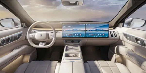 深蓝汽车近日发布了深蓝S09的内饰细节及配置信息,这款大型SUV定位接近理想L9,预计将在今年上市。深蓝S09采用6座布局,车内整体配色以浅色为主,内饰设计现代、舒适。中控部分配备了两块15.6英寸悬浮式屏幕(2.5K分辨率、1000尼特亮度),并且副驾位置也配备了同样风格的屏幕,屏幕之间形成连体布局。此外,车内还配备了43英寸的AR-HUD抬头显示系统,增强了驾驶体验。