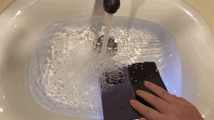 此外,OPPO Find N5还通过了IPX6、IPX8和IPX9三重防水认证,打破了折叠屏手机在防水技术上的限制。IPX6级认证意味着它能够承受高压水流的喷射,适合应对日常雨天通话或厨房溅水等场景;IPX8级认证则表明它能在1米深的水下浸泡长达30分钟而不受影响,轻松应对意外落水情况;而全球首创的IPX9级认证,更是让它能够耐受高温高压水流的冲击,即使在温泉或汗蒸房等极端环境中也能稳定运行。