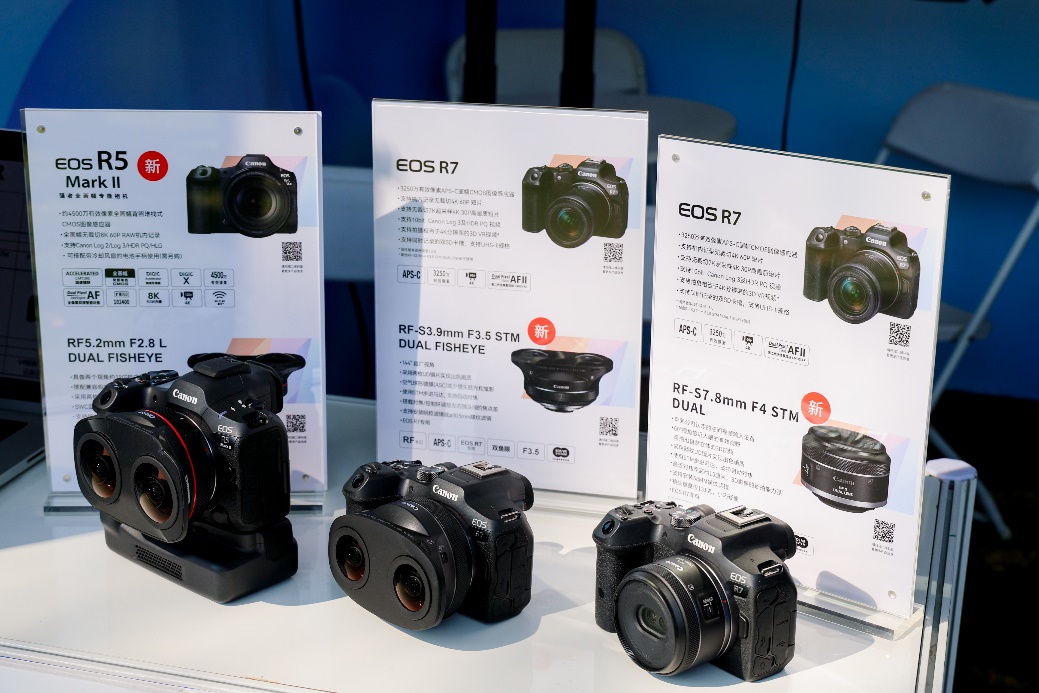 本次大会的佳能展台上,除了三款佳能 3D VR镜头外,佳能还带来了包括新一代全画幅强者专微相机EOS R5 Mark II、青春专微相机EOS R7、CINEMA EOS电影机新品EOS C80等产品,共同组成了“一机一镜,即刻开拍”的拍摄解决方案,让创作者们能够现场体验佳能解决方案在创作VR、空间视频时的便利与专业性。