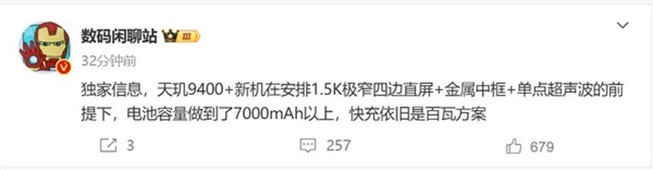 据之前的报道来看,REDMI K80至尊版将会搭载联发科最新的天玑9400+移动平台。这颗芯片采用台积电3nm工艺制程,核心架构依旧是全大核设计,搭载了1颗Cortex-X925超大核、三颗Cortex-X4超大核以及四颗Cortex-A720大核。最令人期待的是,X925超大核的CPU频率将突破3.7GHz,成为天玑系列芯片中的最快!