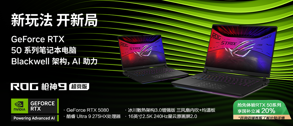 GeForce RTX™ 5080加持打造畅快游戏体验 ROG枪神9超竞版预约价24999元