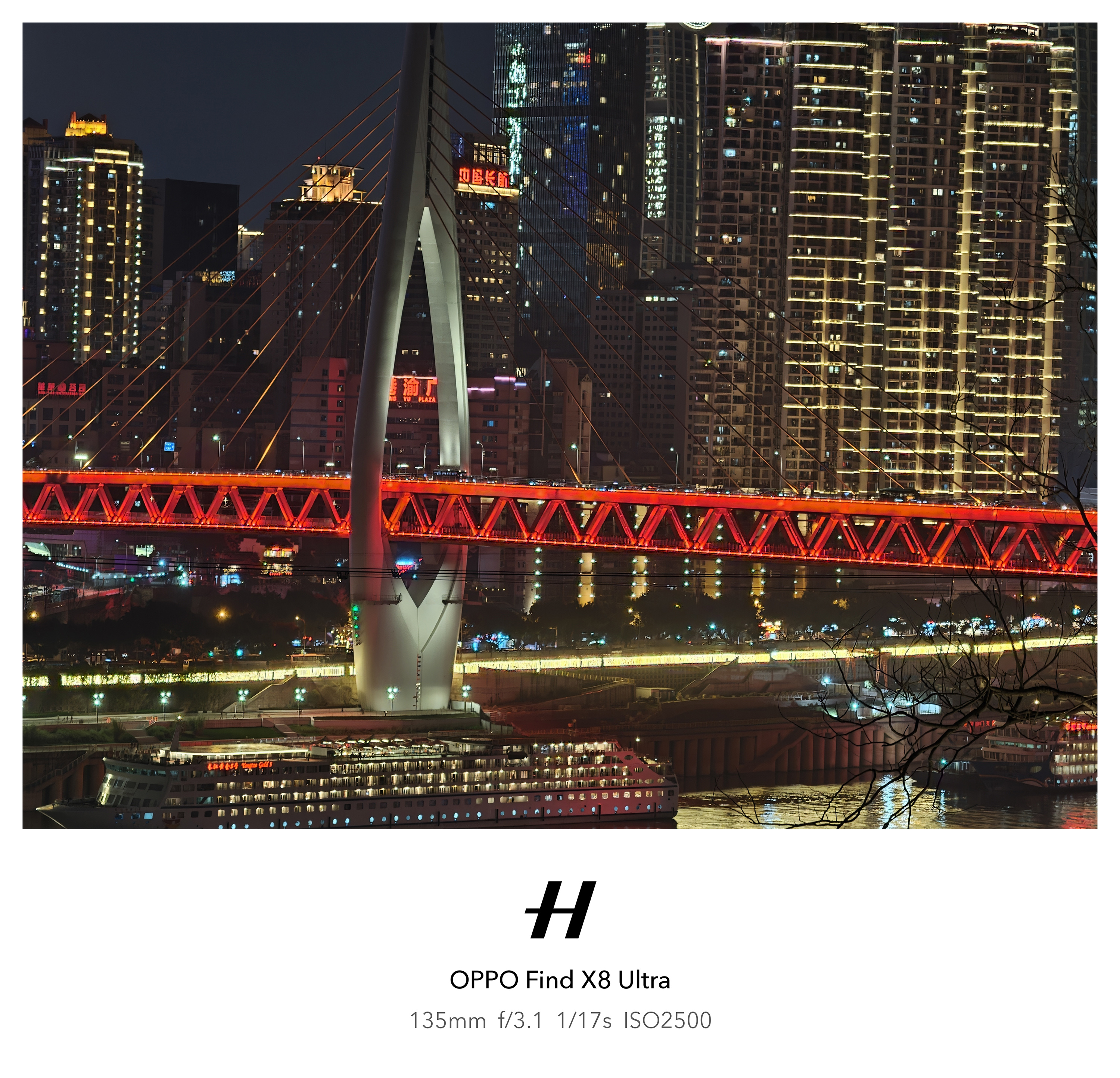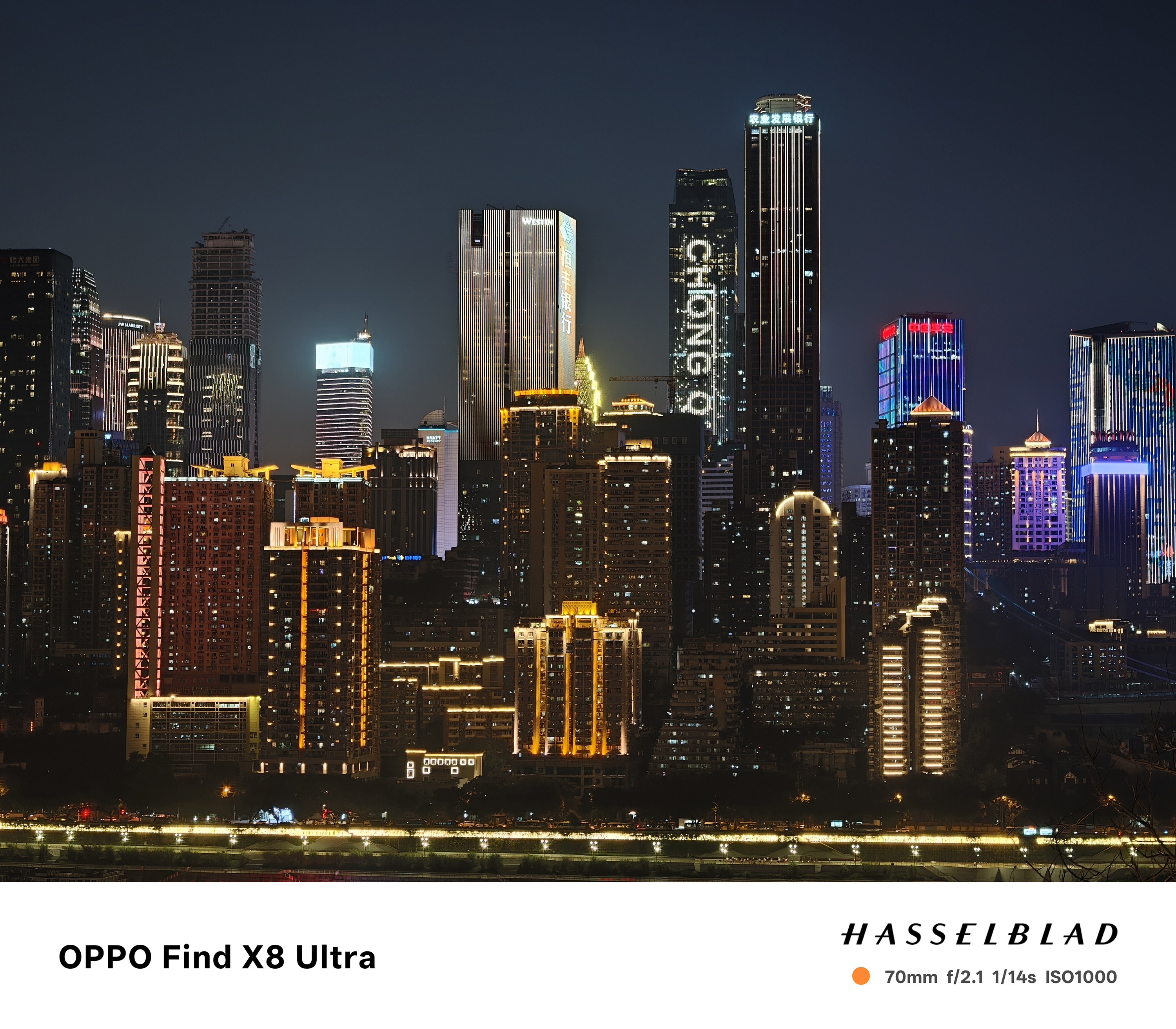 在夜景拍摄中,Find X8 Ultra的表现更是令人惊艳。全新的LUMO凝光影像系统通过软硬件深度协同,显著提升了暗光环境下的成像质量。主摄与长焦镜头的超大底设计,搭配OPPO自研的AI算法,能够有效提升进光量,抑制噪点,让夜景照片更加明亮通透。